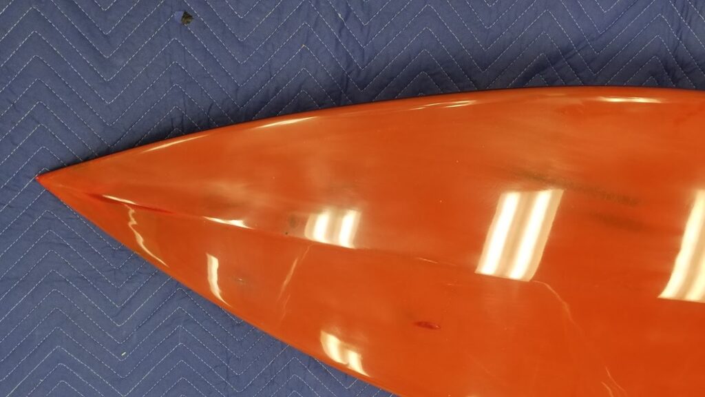 At 8ft 5in. this board is a big wave beast well-suited to Dick’s larger than life personality. It features a unique and very pronounced vee in the nose designed to cut through the surface chop that big surf often has. It is easy to imagine Dick dropping in critically late on a vertical face and burying the rail nose- to- tail on a bottom turn.