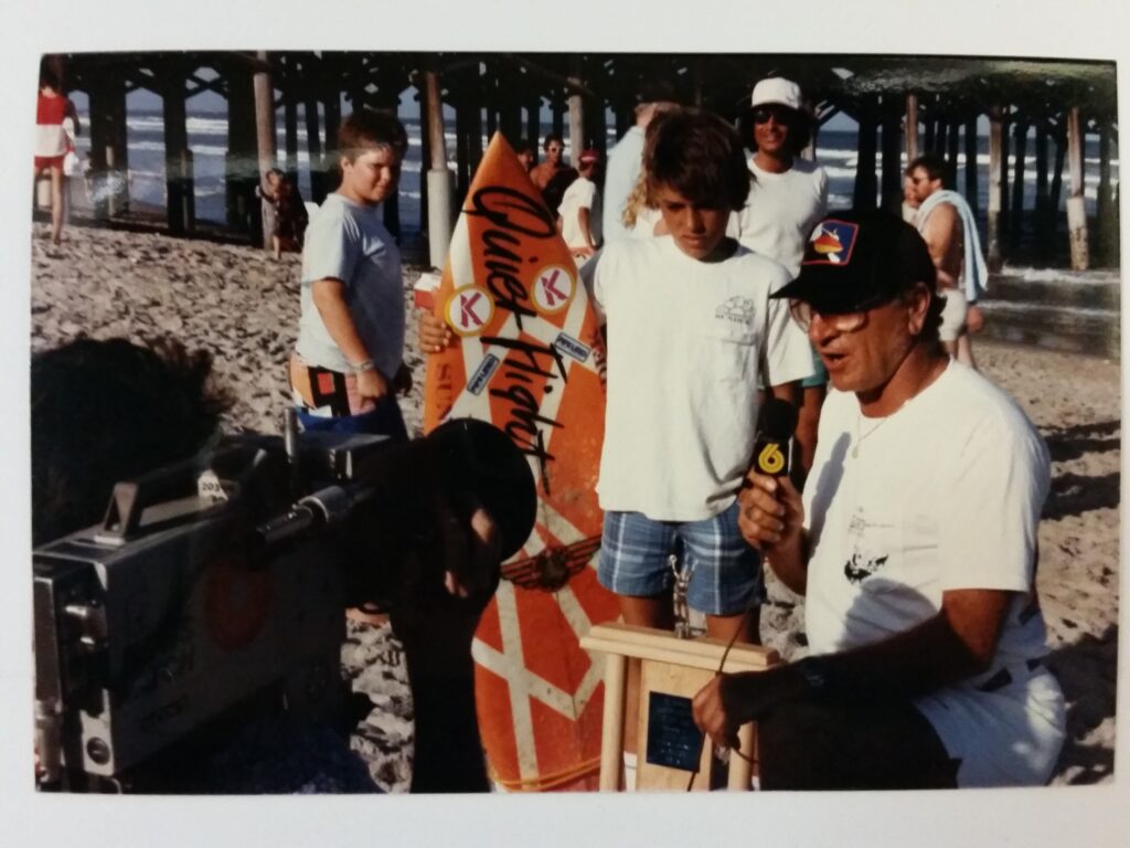 The museum has received many donations over the years from our generous supporters. But every so often something special comes through our door. We were recently visited by Steve and Kelly Casanova who brought with them Dick Catri’s personal big wave gun. This board was shaped by Dick himself and was his travel board that went with him wherever he traveled to surf. Steve is a personal friend of the Catri family and even worked at Shagg’s Surf shop for a few years. When Steve received it from the Catri family it was in well used condition so Steve had it beautifully restored by Ricky Carroll.