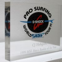 The Florida Surf Museum is proud to present “Hobgood-The Exhibit” which chronicles the careers of twin brothers CJ and Damien Hobgood. They are the latest in a long line of champion surfers that have come from the Space Coast of Florida. The brothers grew up in Satellite Beach and quickly advanced in the highly competitive local contest scene. Their competitive drive propelled them to the World Championship Tour circuit, where they excelled for more than 20 years. The exhibit showcases the Hobgoods’ career with displays of their trophies, contest winning surfboards and personal memorabilia.
